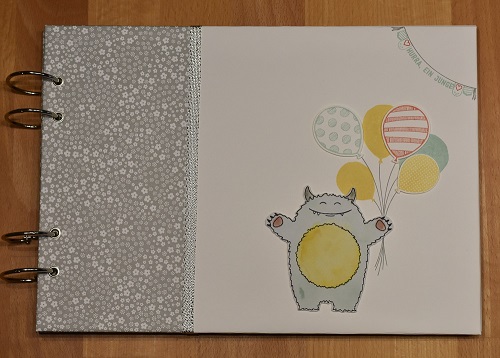 Herzlich Willkommen zur ersten Blogparade der Stempelwiese! Heute gibt es bei vielen Teammitgliedern verschiedene Projekte die mit Sale-a-Bration-Produkten gefertigt wurden. Ich hatte mir die zwei Geschenkbänder bestellt, die mit Silber und Gold eingewebt sind und wollte sie gerne als Trenner für Albencover verwenden. Das hat auch wunderbar gepasst, wie ihr hier sehen könnt.