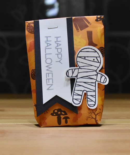 Es war Halloween, da kommen bei uns immer ein paar Kinder vorbei und schnurren etwas Süßes. Auch dieses Jahr war das so. Wie in den letzten zwei Jahren, waren es genau fünf, aber jedes Jahr fünf andere. Dieses Jahr hatte ich ein paar Tütchen vorbereitet, damit die Kiddies nicht gleich sehen, was es gibt. Und weil ich unbedingt die Cookie Cutter Halloween Stempel ausprobieren wollte ;)